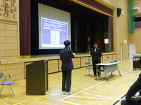 本当の情報かを確認する「ファクトチェック」の必要性等、クイズ形式もあり、多くの生徒たちが高い興味・関心をもって、講演会に参加していました。