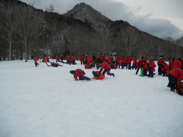 たかつえスキー場でスキー実習を行い、舘岩少年自然の家に宿泊しました。